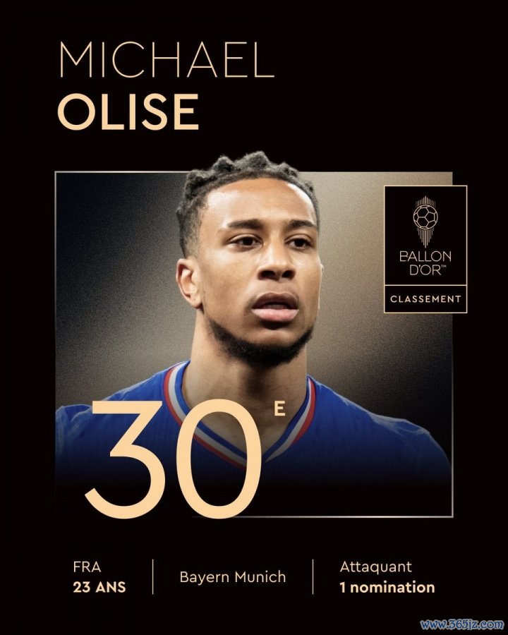 30、奥利塞(拜仁/法国、23岁、第一次获得提名)