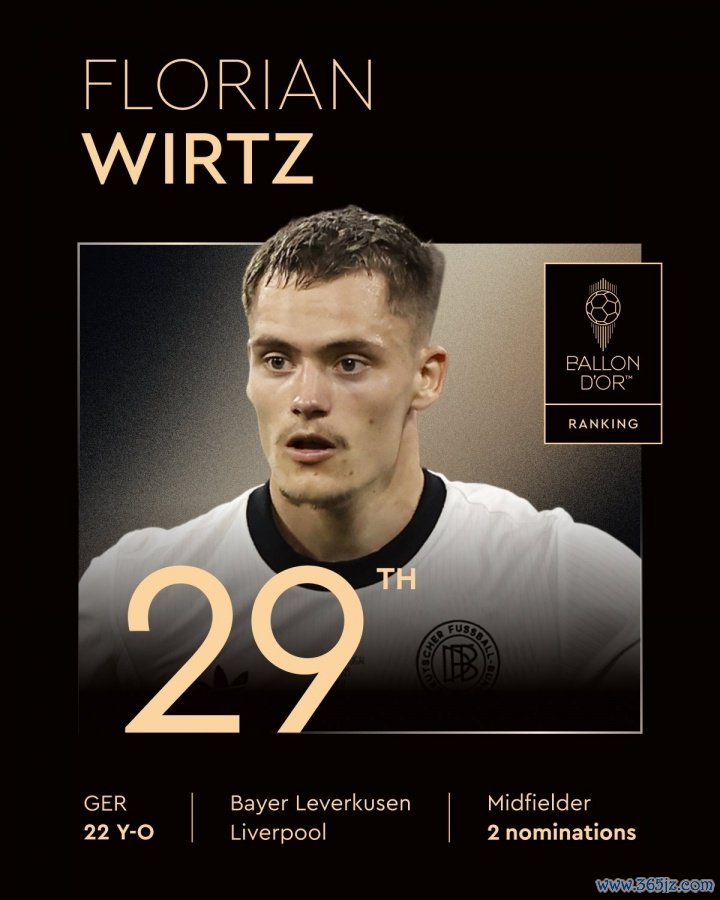 29、维尔茨(勒沃库森/利物浦/德国、22岁,第二次获得提名)