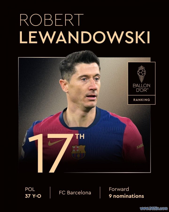 17、莱万(巴塞罗那/波兰、37岁、第九次获得提名)