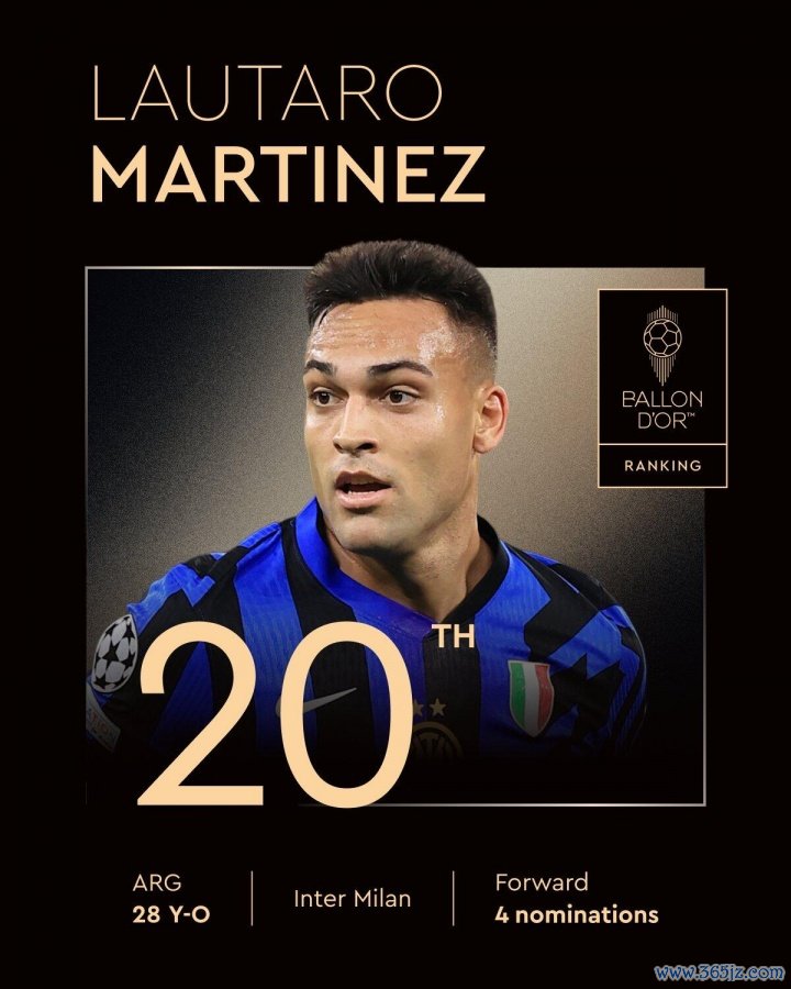 20、劳塔罗(国米/阿根廷、28岁、第四次获得提名)
