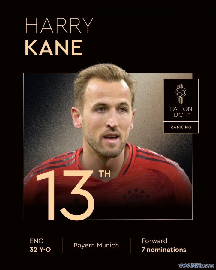 13、凯恩(拜仁/英格兰、32岁、第七次获得提名)