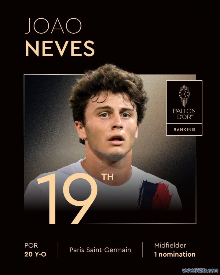19、若奥·内维斯(巴黎圣日耳曼/葡萄牙、20岁、第一次获得提名)