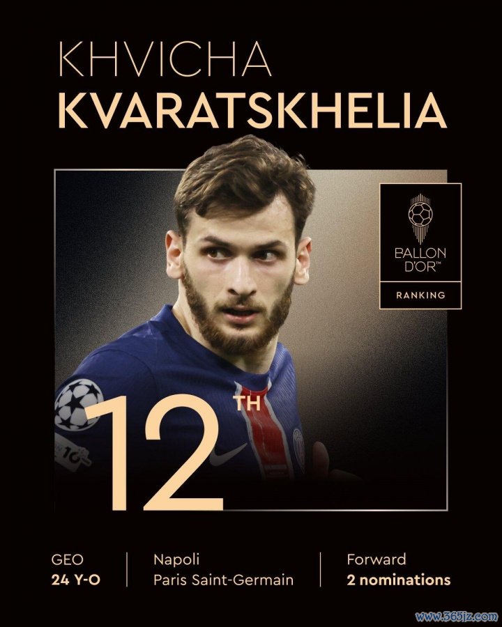 12、克瓦拉茨赫利亚(那不勒斯/巴黎圣日耳曼、24岁、第二次获得提名)