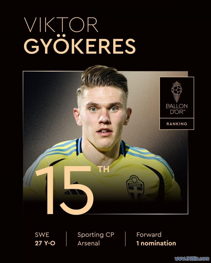 15、约克雷斯(葡萄牙体育/阿森纳/瑞典、27岁、第一次获得提名)