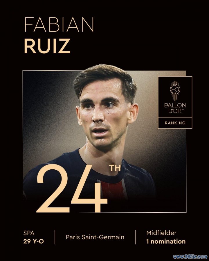 24、法比安·鲁伊斯(巴黎圣日耳曼/西班牙、29岁、第一次获得提名)