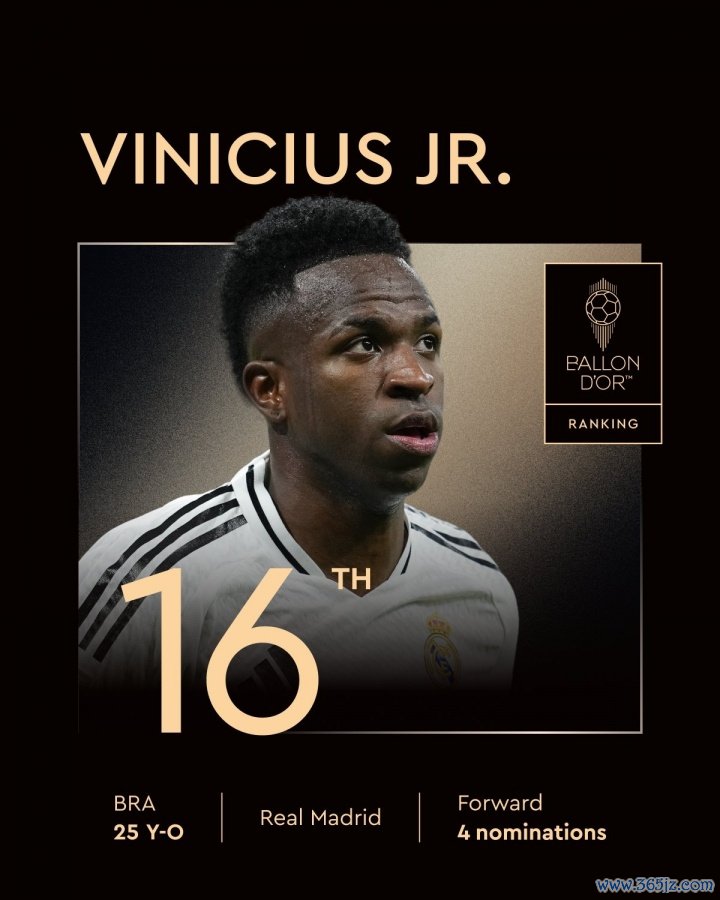 16、维尼修斯(皇马/巴西、25岁、第四次获得提名)
