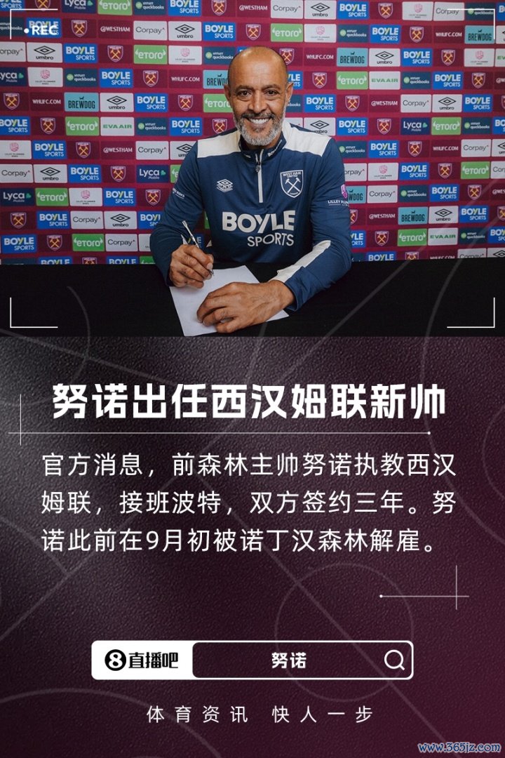 火速再就业!官方:前森林主帅努诺执教西汉姆联,接班波特