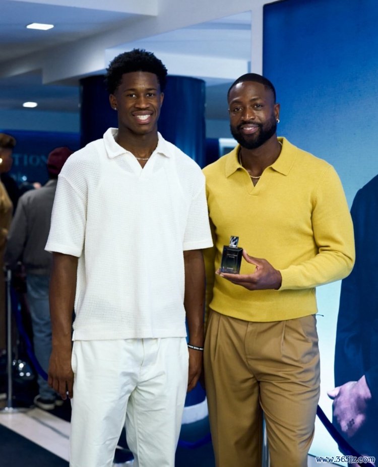 表情略显拘谨!76人探花埃奇库姆与韦德参加活动并合影