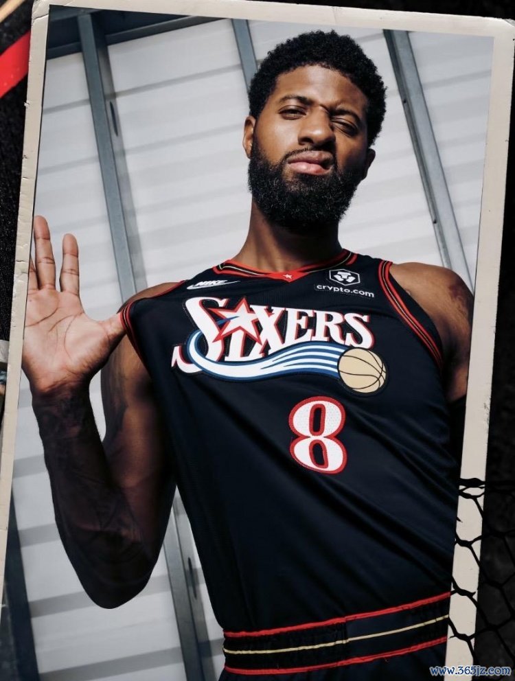 还挺帅!乔治中文社媒晒自己身穿76人经典黑色运动活动 服 照:英雄归来
