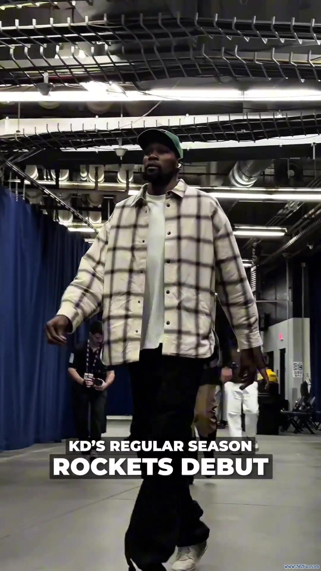 迎火箭常规赛首秀&战旧主雷霆!杜兰特格子上衣+鸭舌帽帅气到场