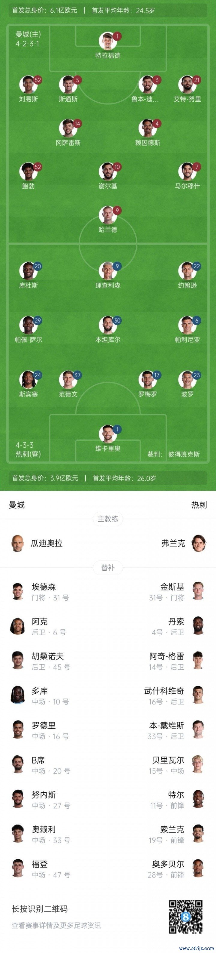 24岁326天!瓜迪奥拉派出英超执教生涯最年轻杆位阵形