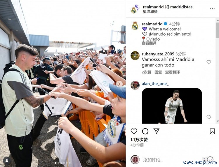 皇马社媒晒球员们抵达奥维耶多照片,受到球迷剧烈 欢迎