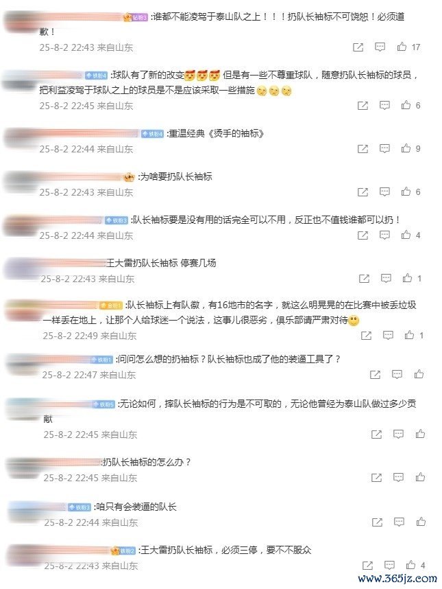 泰山球迷怒斥王大雷:扔领队 袖标不可饶恕!无论他曾做过多少贡献