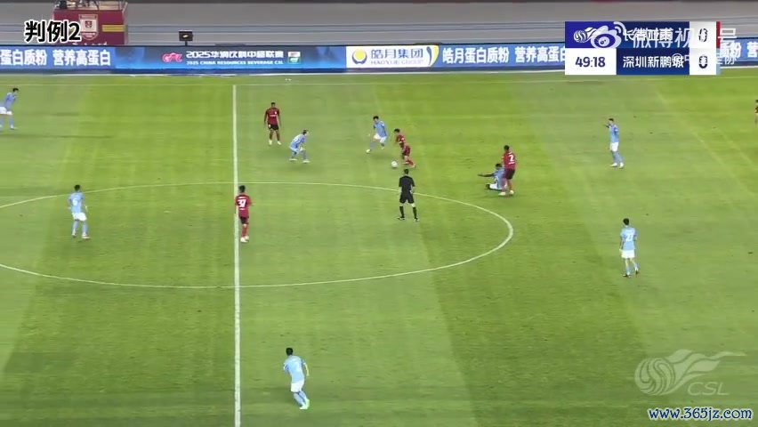 判例二:中超职业联赛 第22轮,长春亚泰VS深圳新鹏城。赛事 第50分钟,长春亚泰队得分 ,裁判 员判得分 有效。VAR未介入。