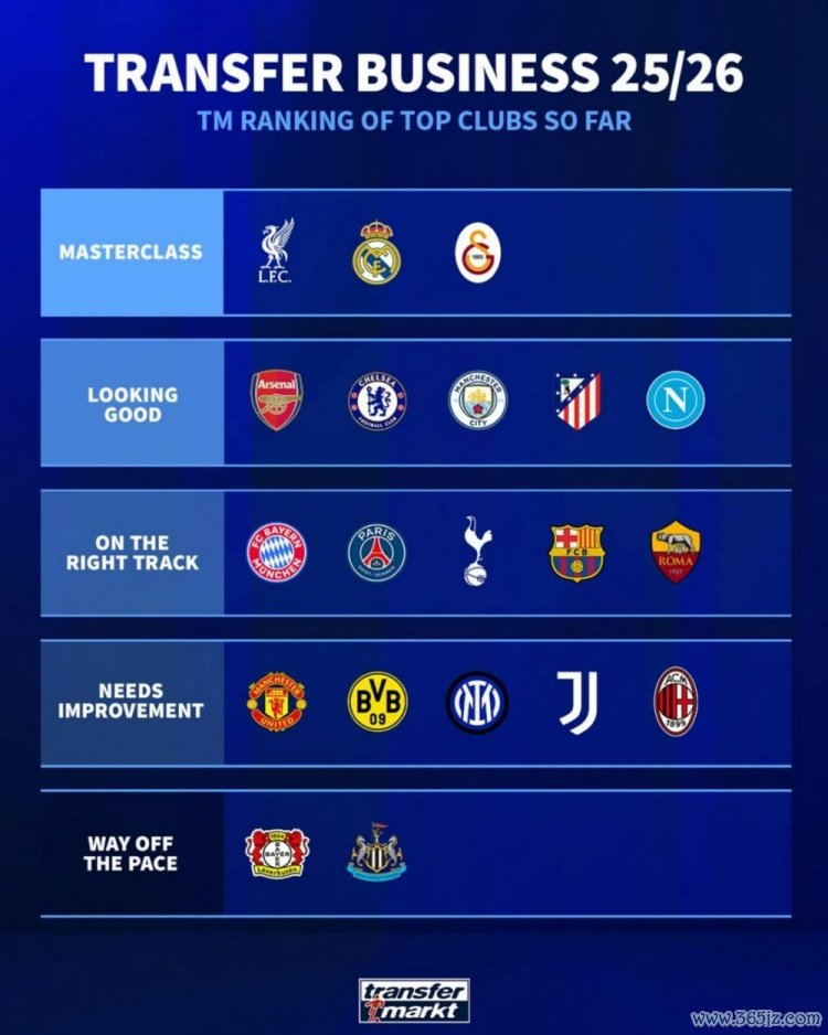 德转为夏窗球队转会操作评级:利物浦&皇马&加拉塔萨雷大师级