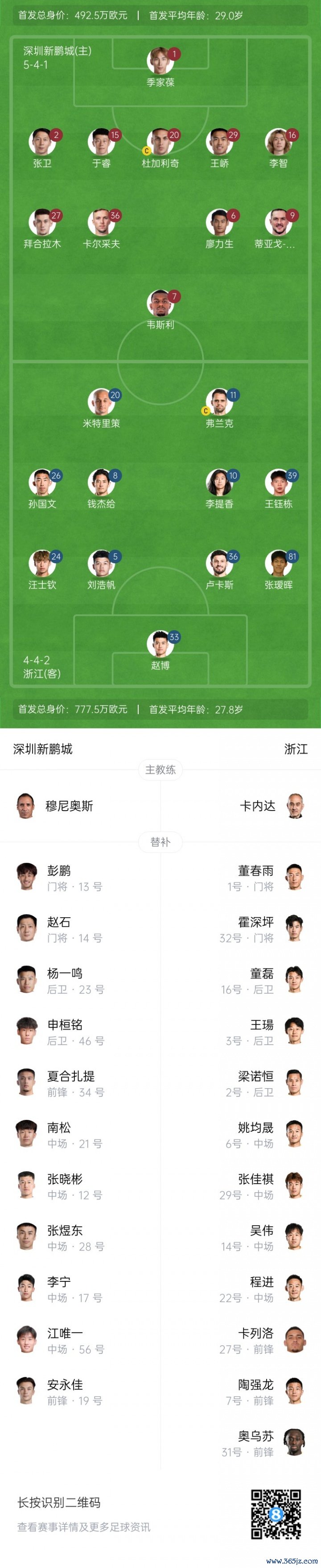 新鹏城vs浙江杆位:王钰栋、拜合拉木先发,20岁张瑷晖连场杆位