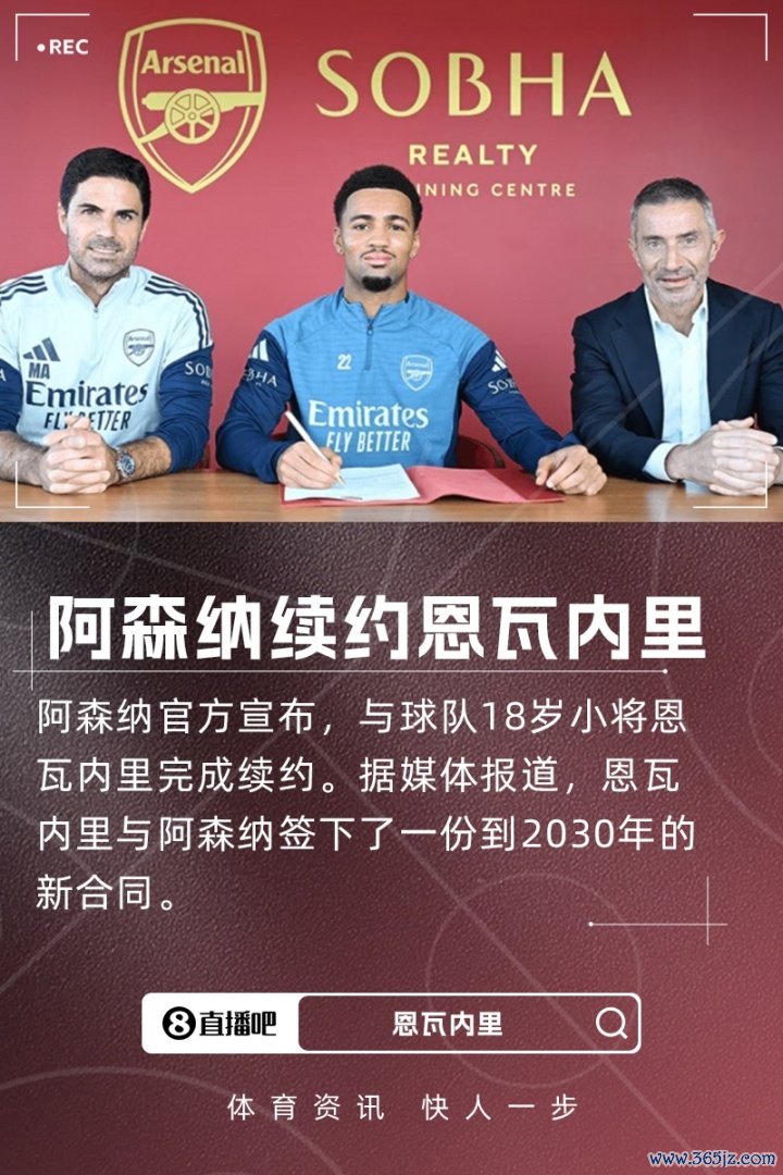 留住未来!官方:阿森纳续约18岁恩瓦内里,据悉合同至2030年