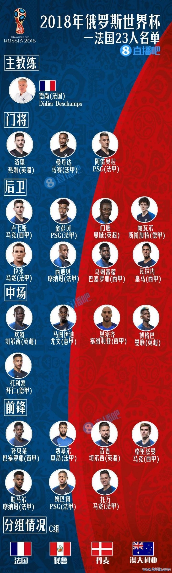 法国队2018年世界杯赛 23人名单及彼时效力球队↓