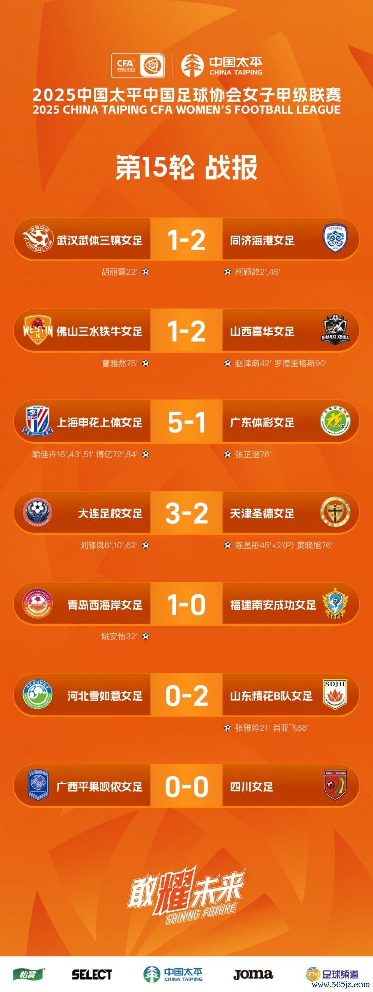 2025女甲职业联赛 第15轮战报、积分榜、射手榜