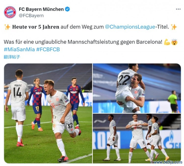 历史性的获胜 !5年前的今天拜仁8-2巴萨,拜仁官方社媒晒照回顾
