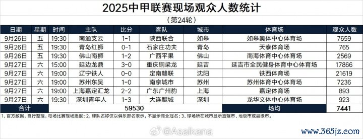 2025中甲职业联赛 现场观赛人群 人数统计(第24轮)