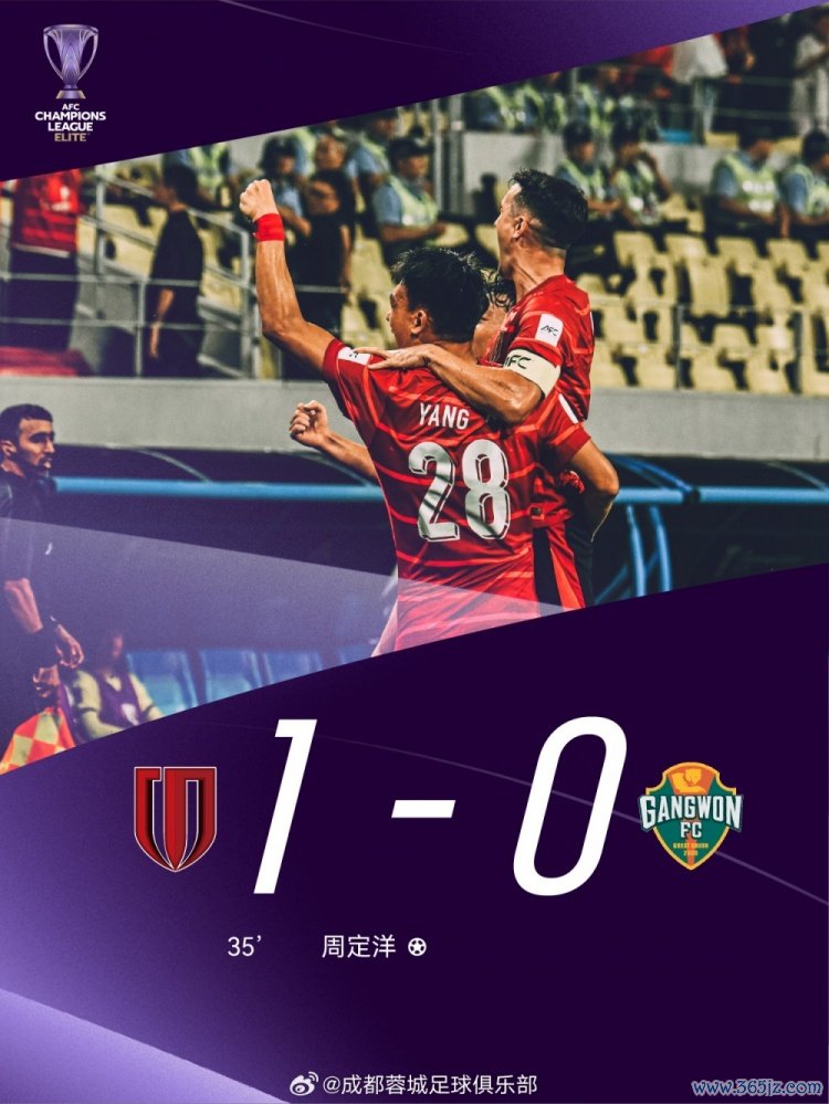 取得亚冠正式比赛首胜!成都蓉城1-0战胜江原FC,周定洋获得本场最佳