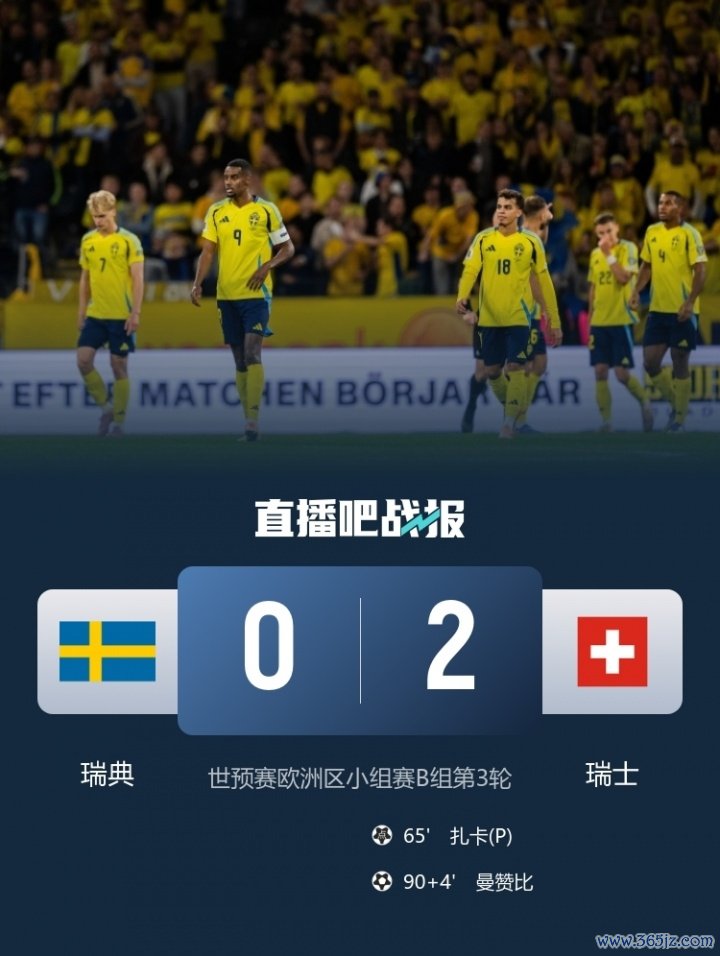 世预赛欧洲区小组赛B组第3轮,瑞典0-2不敌瑞士,遭遇三场不胜。